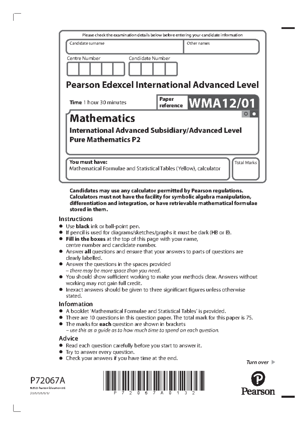 Pure Mathematics P2 January 2023 Question Paper wma12-01-que ...