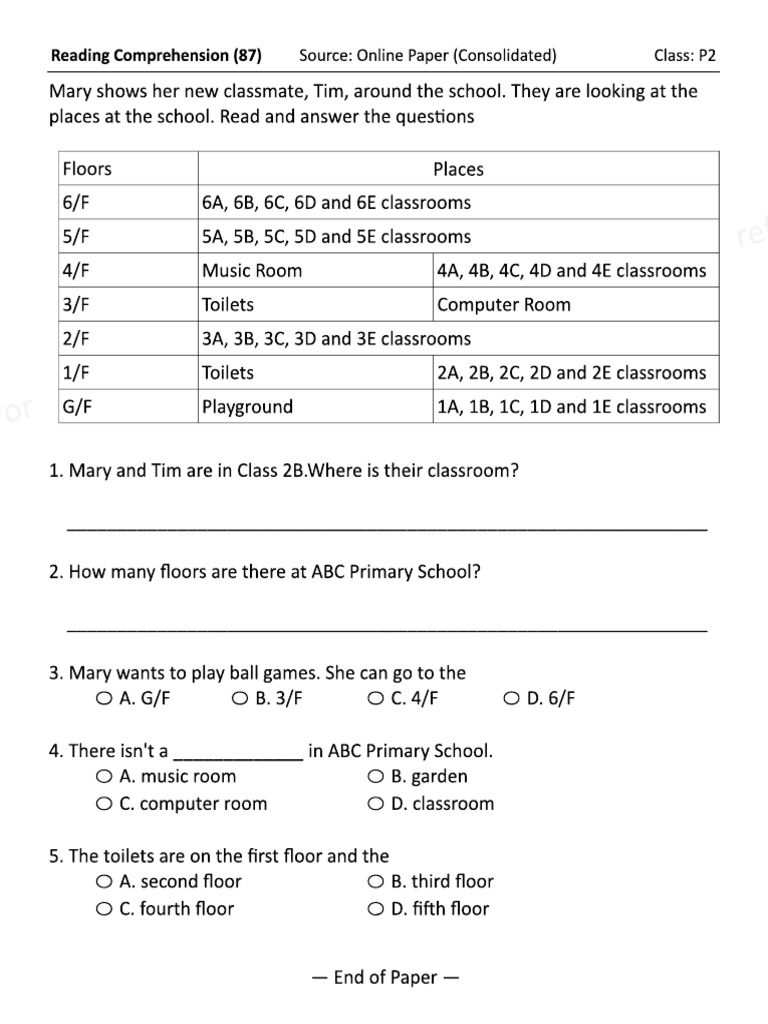 01-08 P2 Reading Comprehension - Suggested Answer | PDF