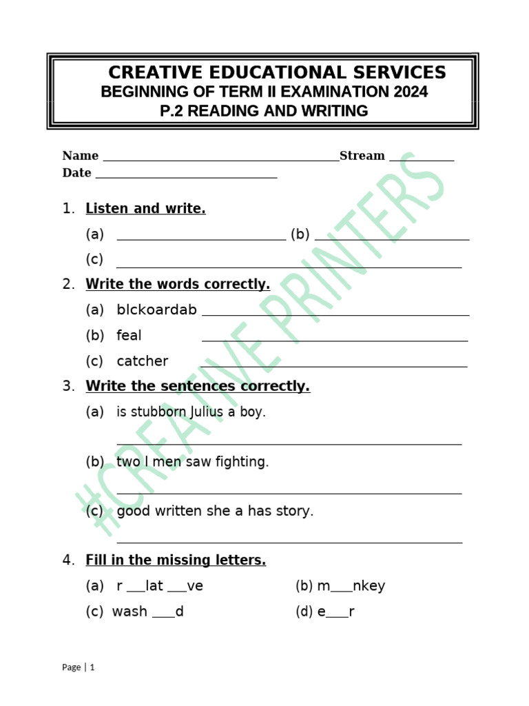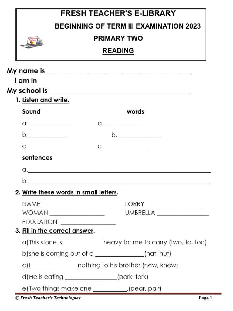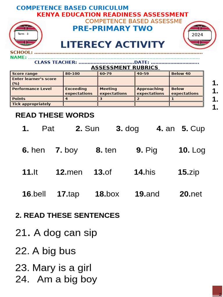P.2 Literacy Revision Set I 2021 Mothercare Preparatory Schools | PDF ...