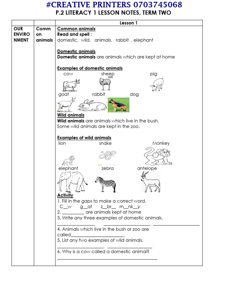 p.2 Literacy II Writing Lesson Notes Term II | PDF | Zoology