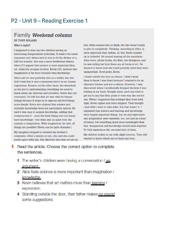 P2 - Unit 9 - Reading, Exercise 1 | PDF