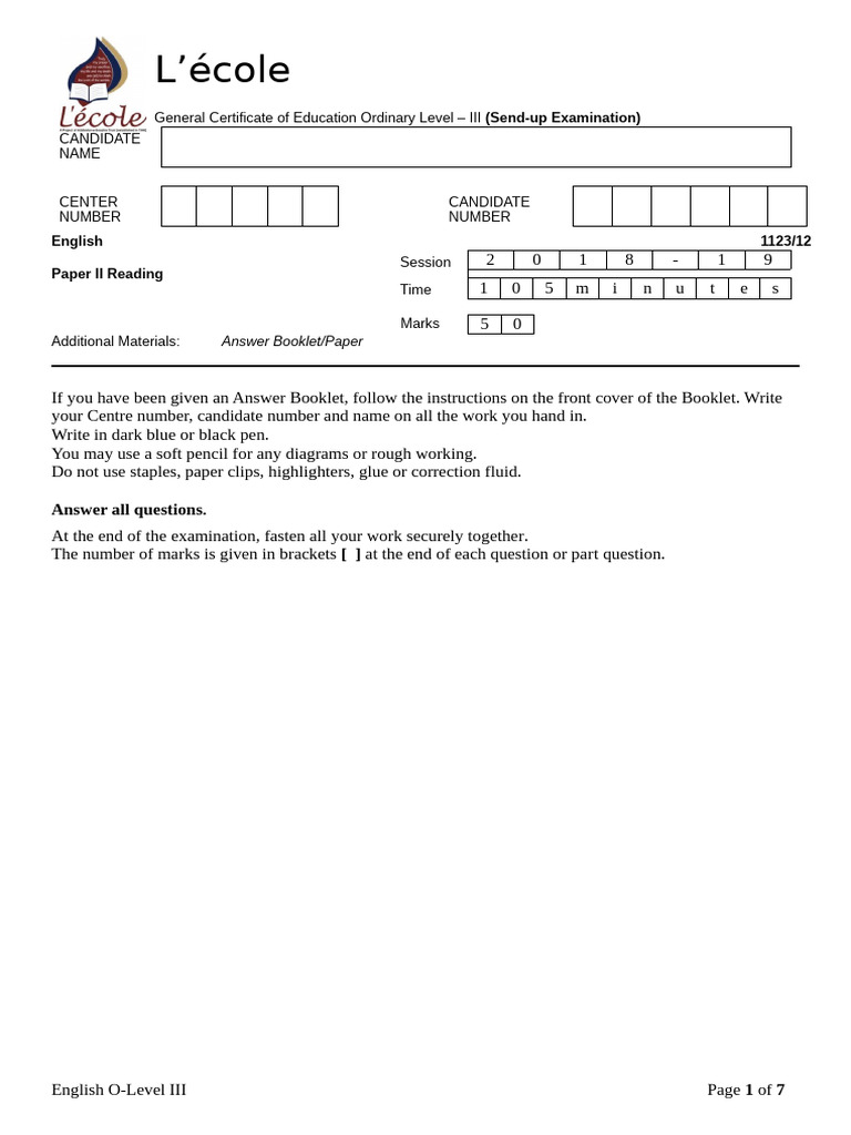 Elliot P2 Reading Comprehension - Cambridge Lower Secondary Test 2022 ...
