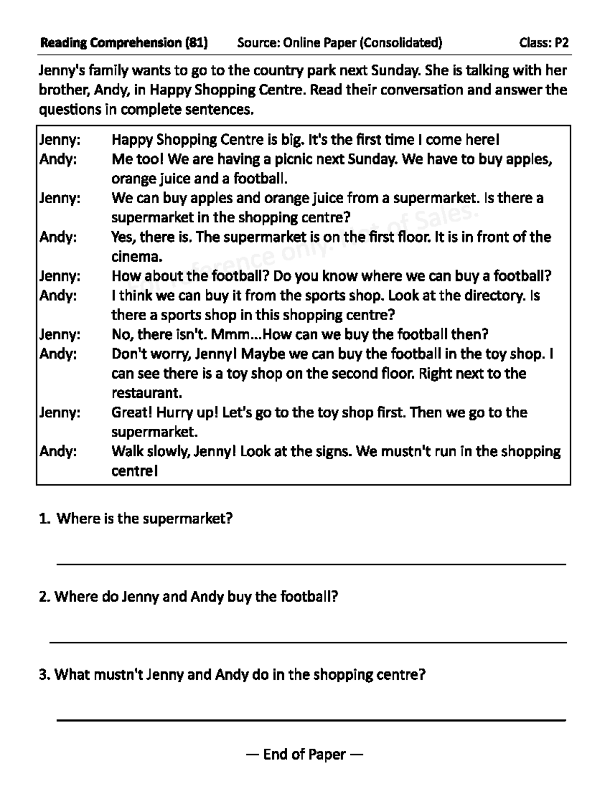 P2 reading comprehension exercise 英文, 興趣及遊戲, 書本 & 文具, 教科書 - Carousell