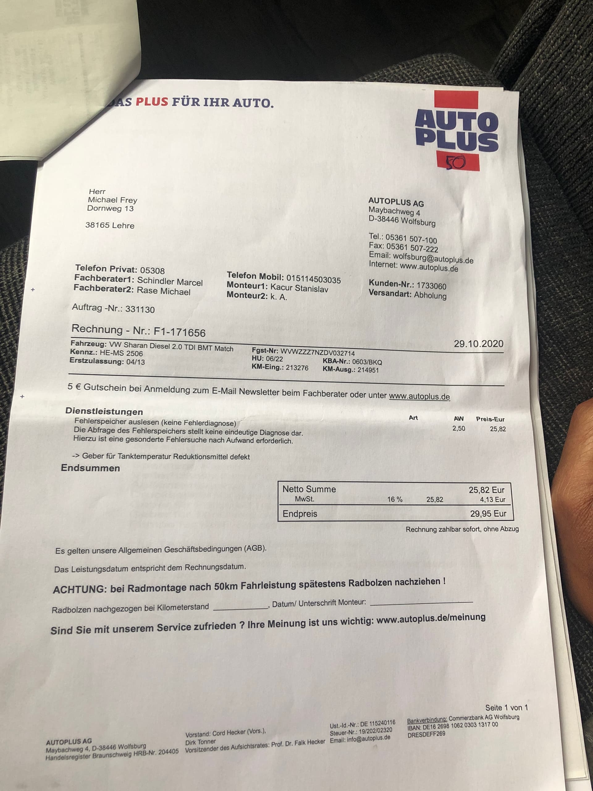 VW Touareg 7P, Sharan 7N горит индикатор нехватки восстановителя AdBlue ...