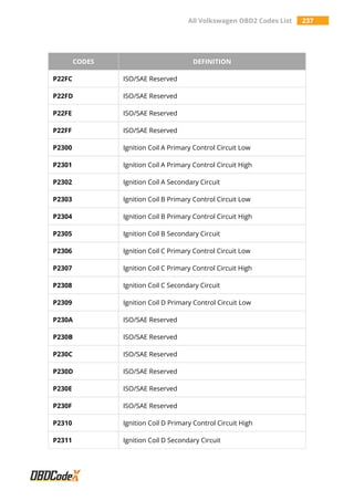 All Volkswagen OBD2 Trouble Codes List – OBDCodex | PDF