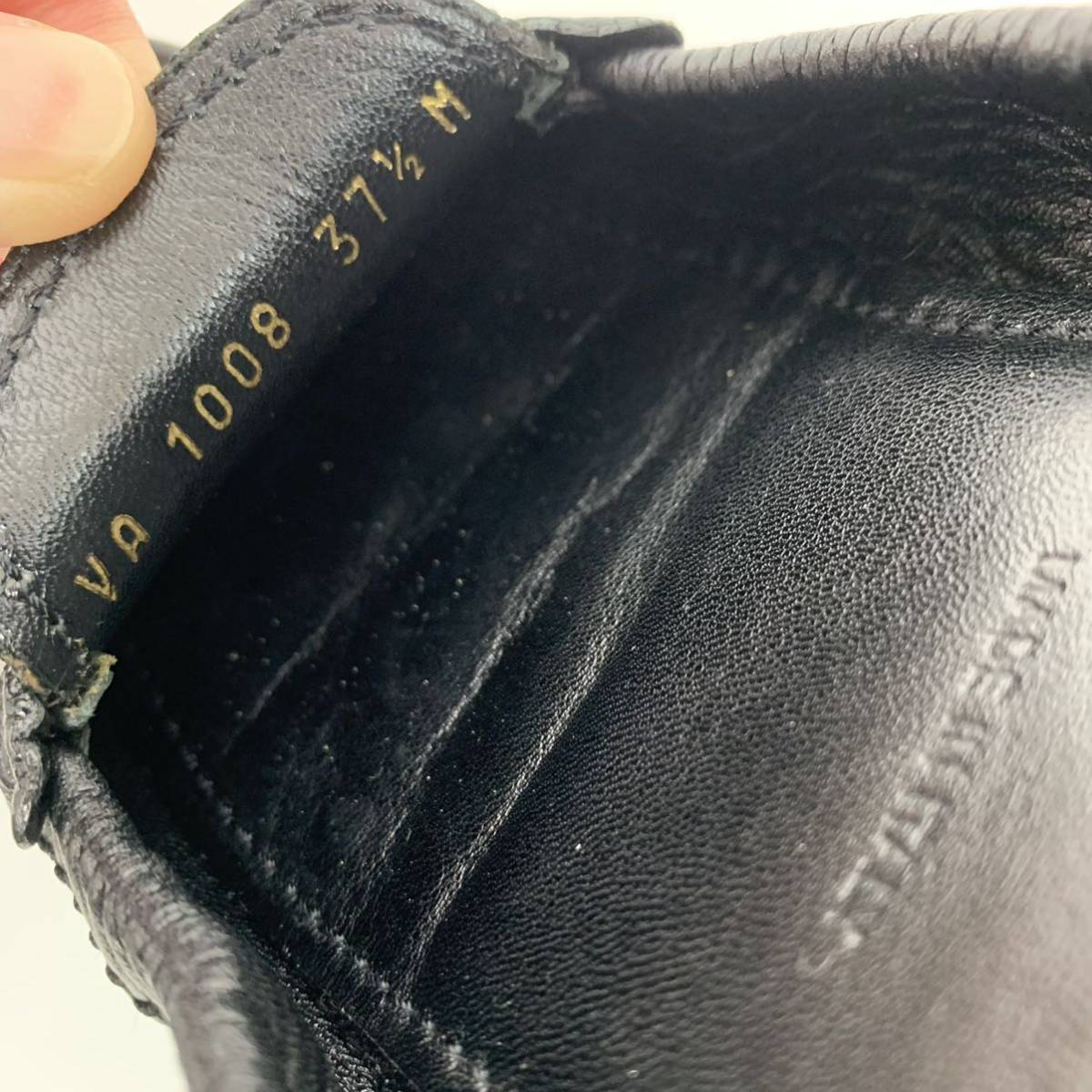 p273 LOUIS VUITTON ルイ ヴィトン レザー フラットシューズ ドライビングシューズ BLACK ローファー 37.5 ...
