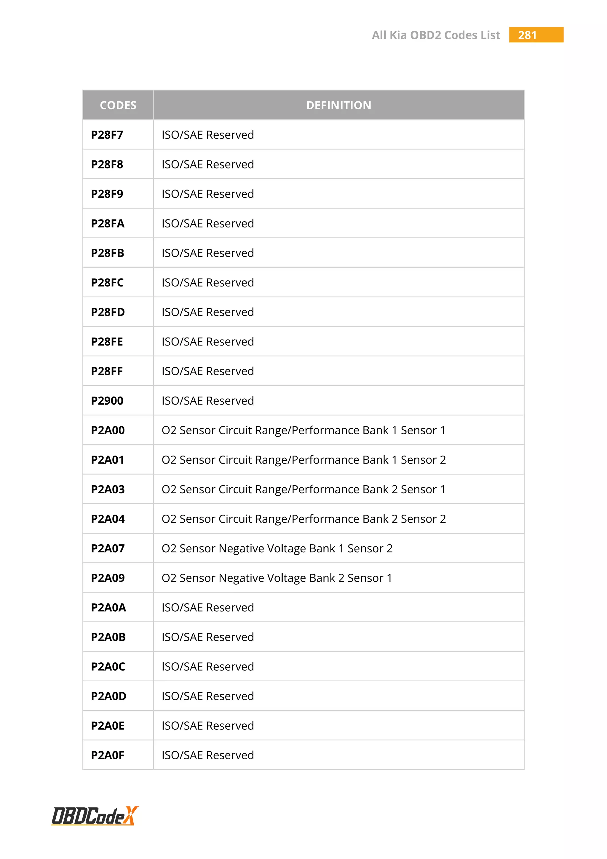 All KIA OBD2 Trouble Codes List – OBDCodex | PDF