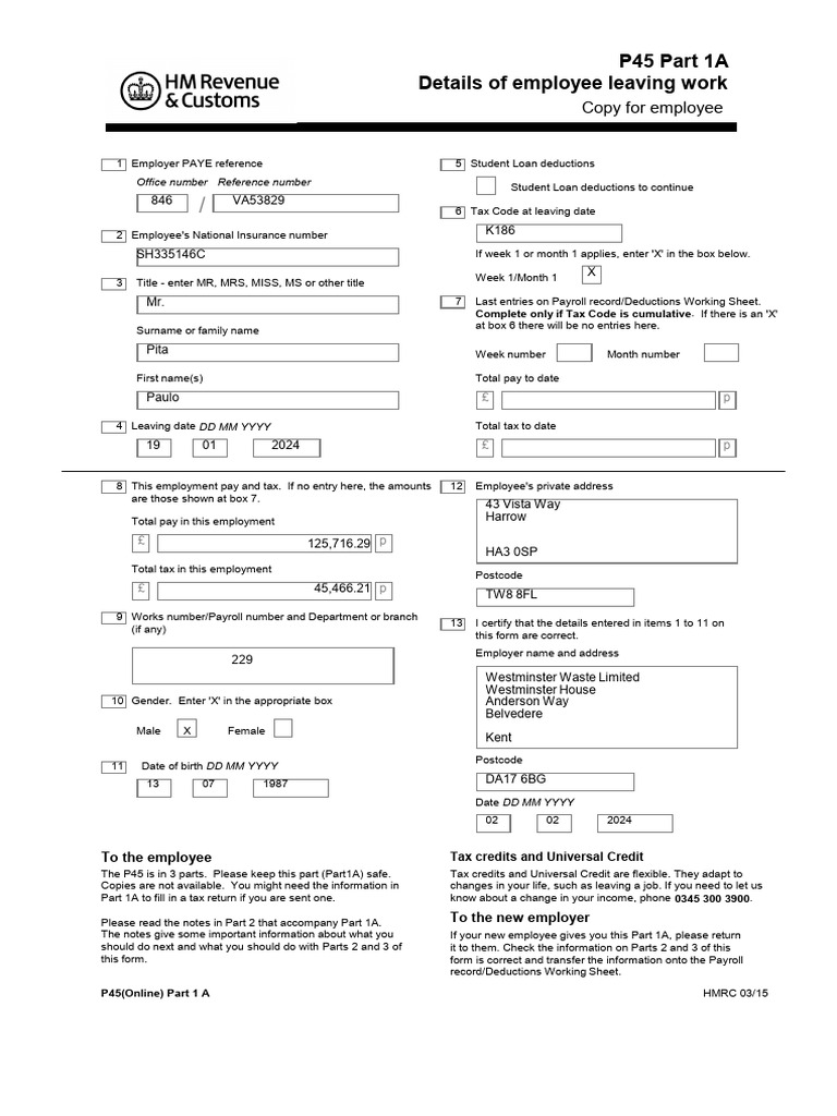 Replacement p45 Docs, Lost P45 & Fake P45 Documents