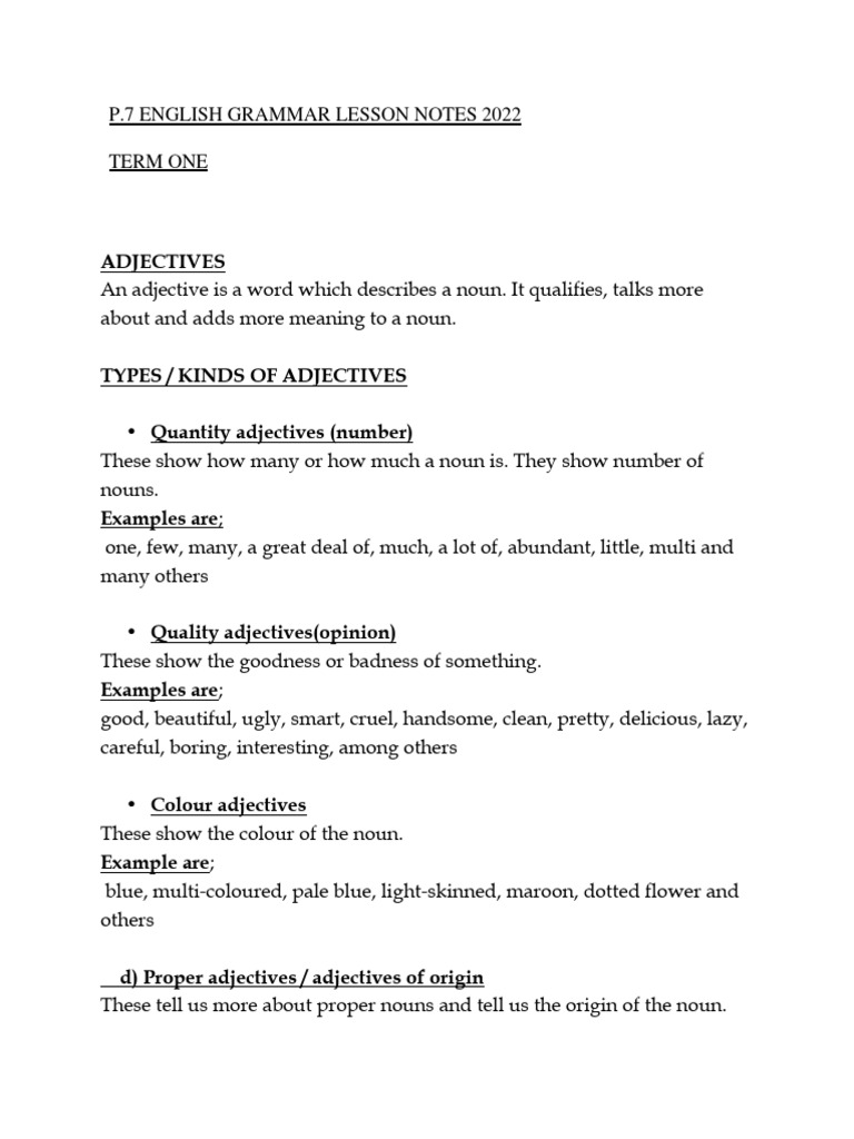 P7 English Grammar Lesson Notes | PDF | Adverb | Adjective