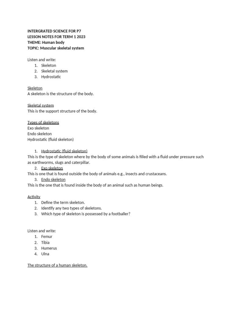 p7 Science Lesson Notes-1 | PDF | Lever | Skeleton