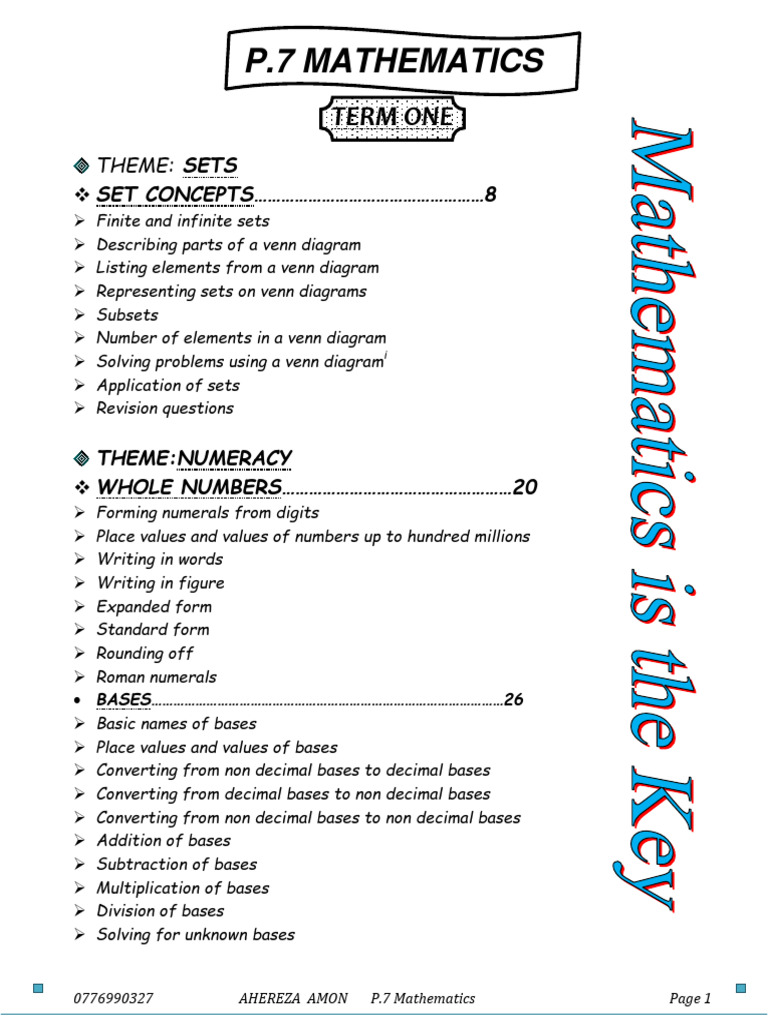 P.7 MATHEMATICS LESSON NOTES TERM I - EcoleBooks