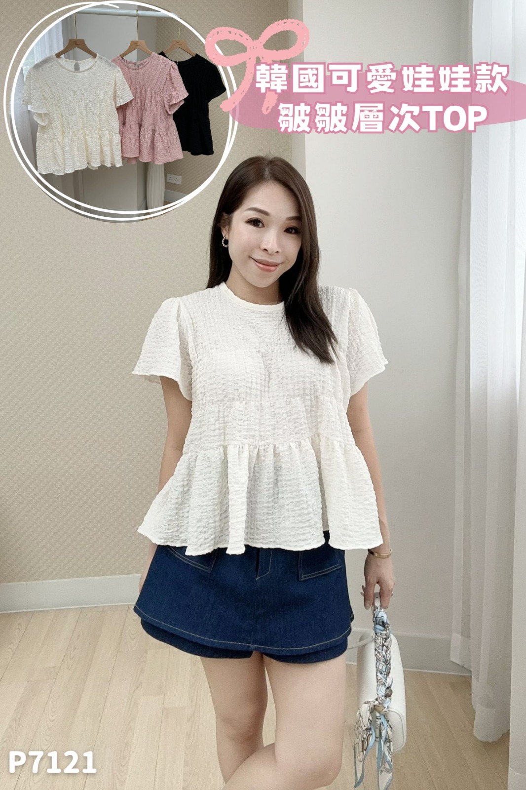 韓國可愛娃娃款皺皺層次TOP-3色 #P7121