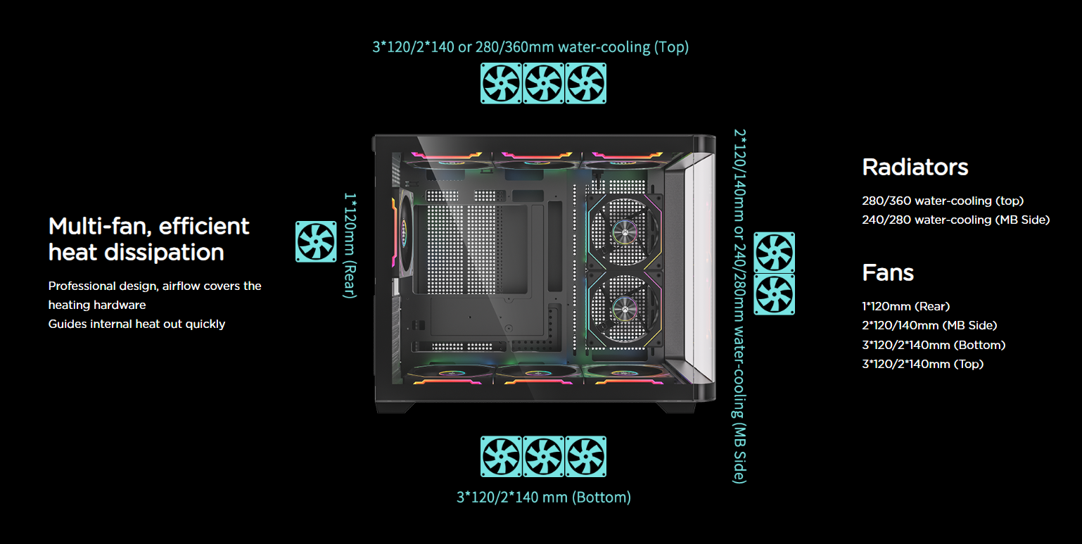 Buy GIMATX Gaming PC Case, 270° Full View Tempered Glass, 360MM RAD ...