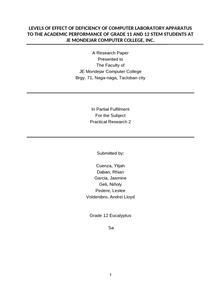 Levels of Effect of Deficiency of Computer Laboratory Apparatus To The ...