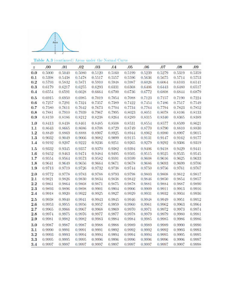 Standard Normal Probabilities: Table of the Area Under the Normal Curve ...