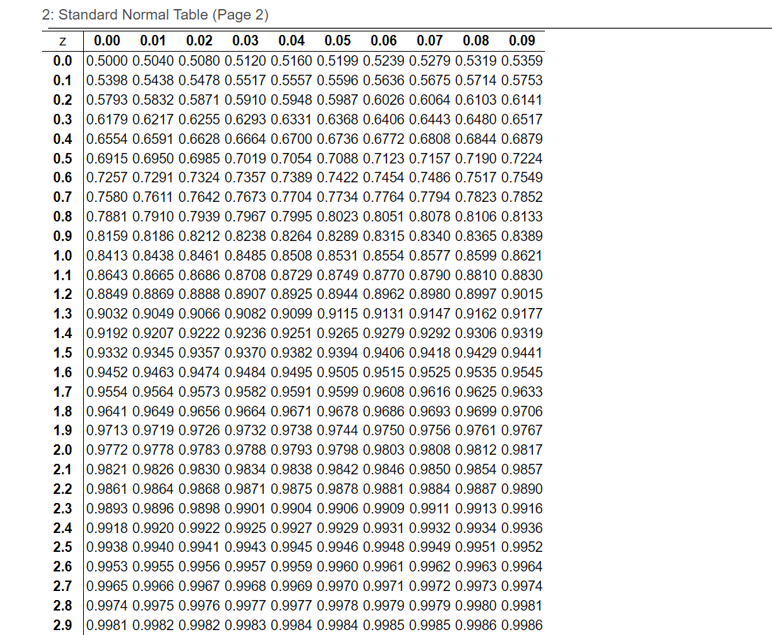 Solved Standard Normal Table (Page 1)Standard Normal Table | Chegg.com