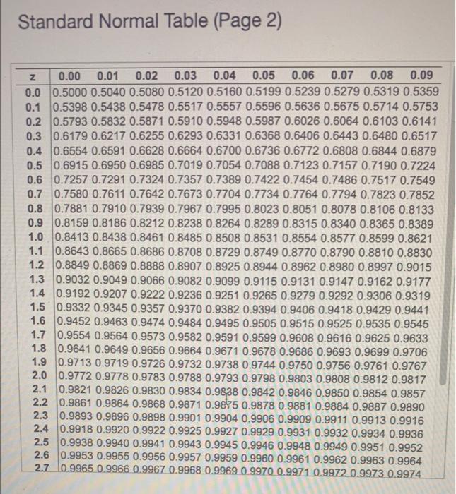Solved Please Use The Standard Normal Table Link On The Fir Algebra ...