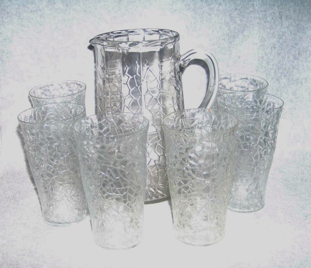 Vintage Crackle Pattern Optic Clear Glass 7 Pc Pitcher Set - Etsy