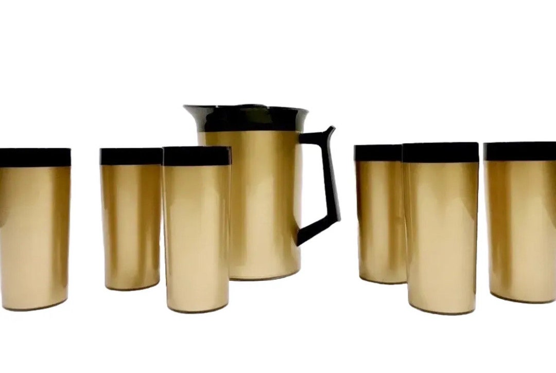 Mid-century 7 Pc Pitcher & Tumbler Set 12oz WEST BEND Thermo-serv ...
