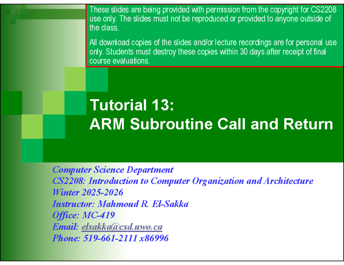 CS2208 Tutorial 13: ARM Subroutine Call and Return - Studocu