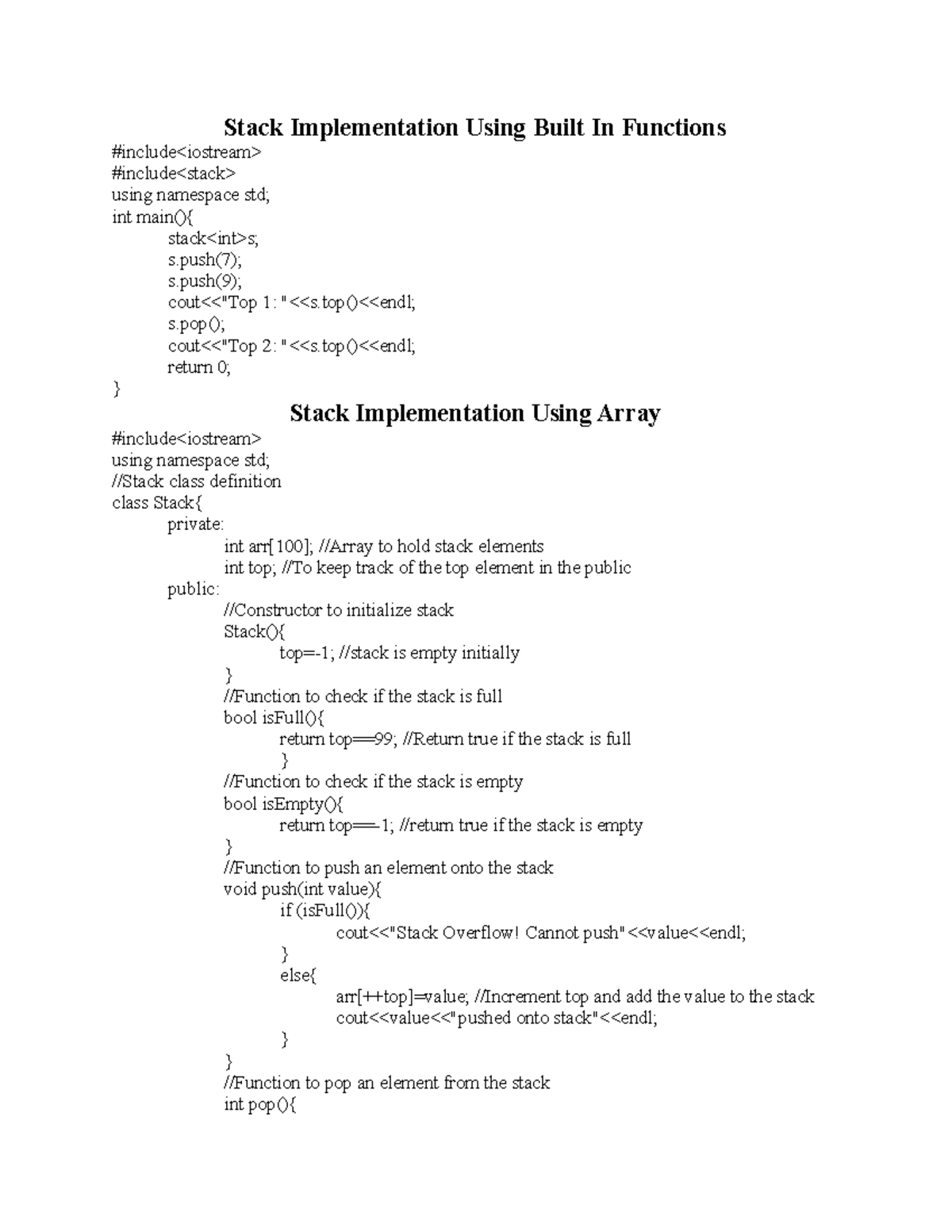 DSA Practical - Stack, Queue, and Sorting Algorithms in C++ - Studocu