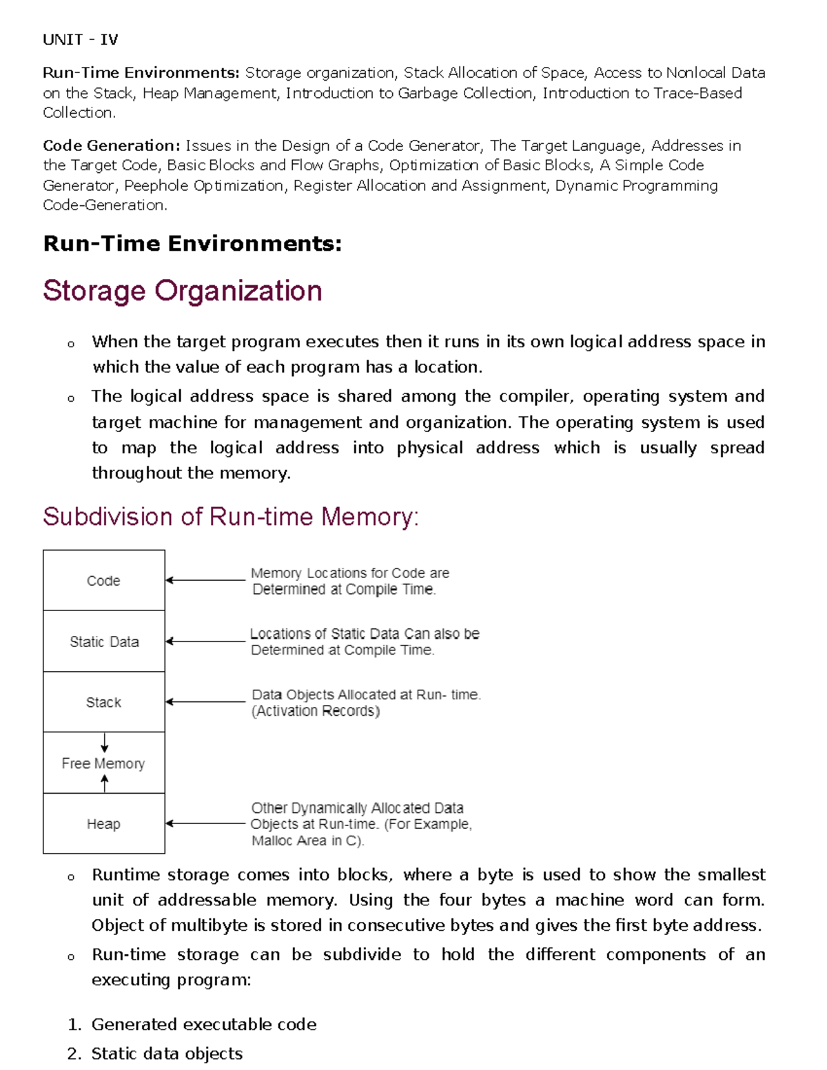 IV-UNIT: Storage Organization, Stack Allocation & Code Generation Notes ...