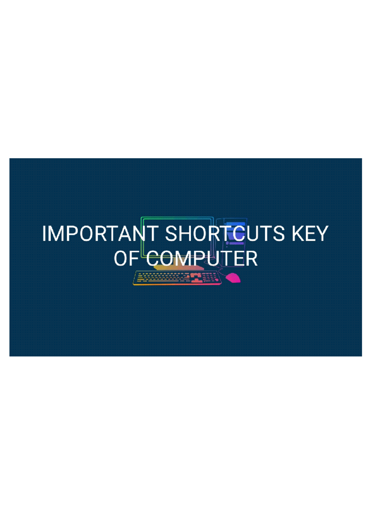 Important shortcut keys for computer - ................ Select All CTRL ...