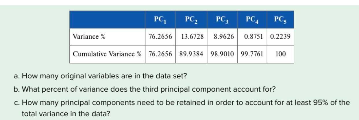 Solved PC1 PC₂ PC3 PCA PC Variance % 76.2656 13.6728 8.9626 | Chegg.com