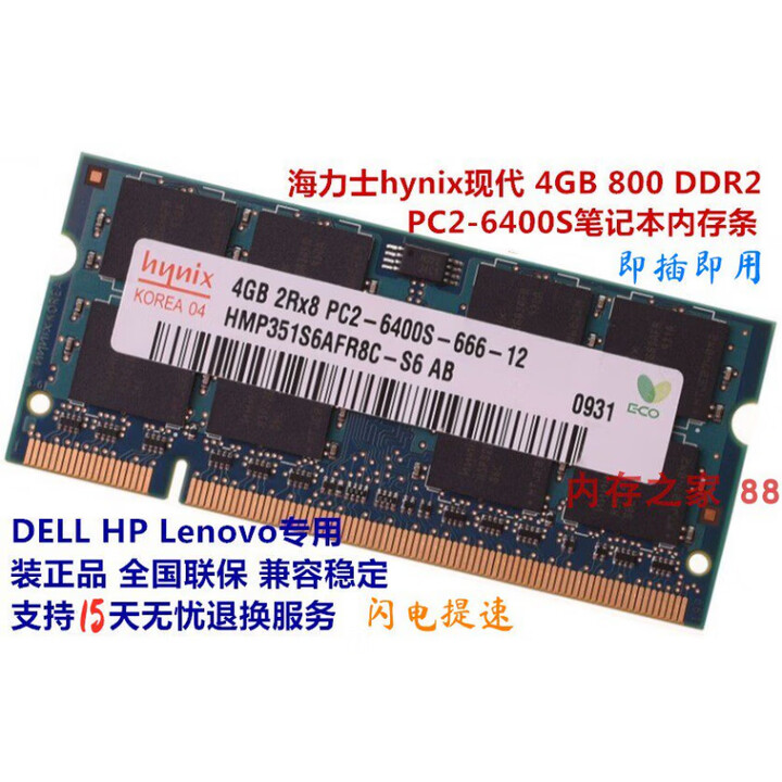 现代海力士海力士现代HY 2GB 667 DDR2 PC2-5300SHP笔记本电脑内存条4GB 800 2GB 800 PC2-6400S ...