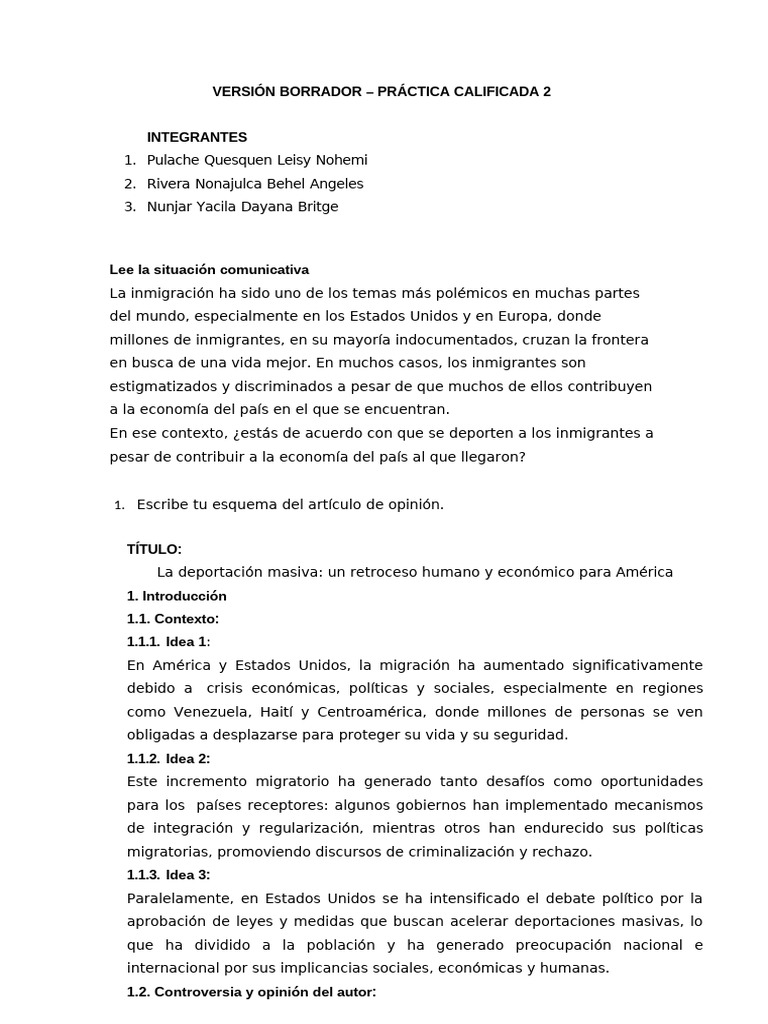 Versión Borrador de La PC2 - Version Borrador - Articulo de Opinion ...
