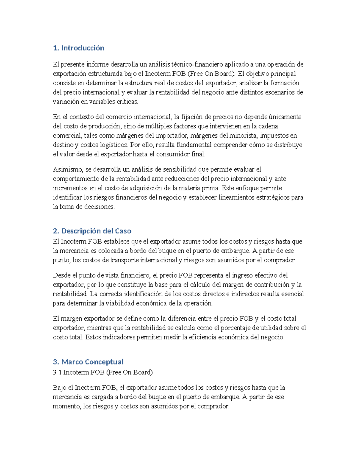Informe PC2: Análisis de Costos y Rentabilidad en Exportación FOB - Studocu
