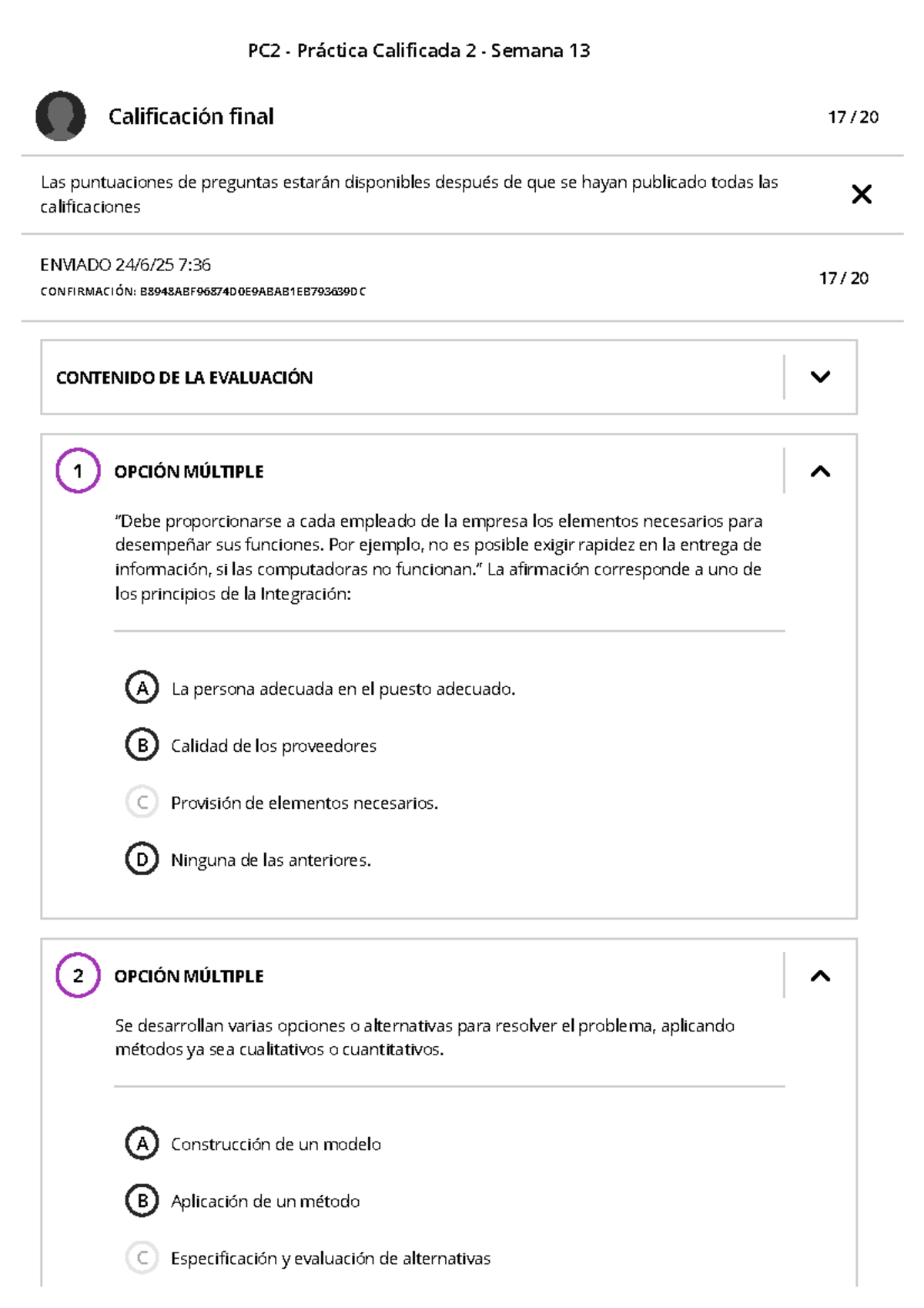 PC2 Práctica Calificada 2 - Evaluación Semana 13 y Calificaciones - Studocu
