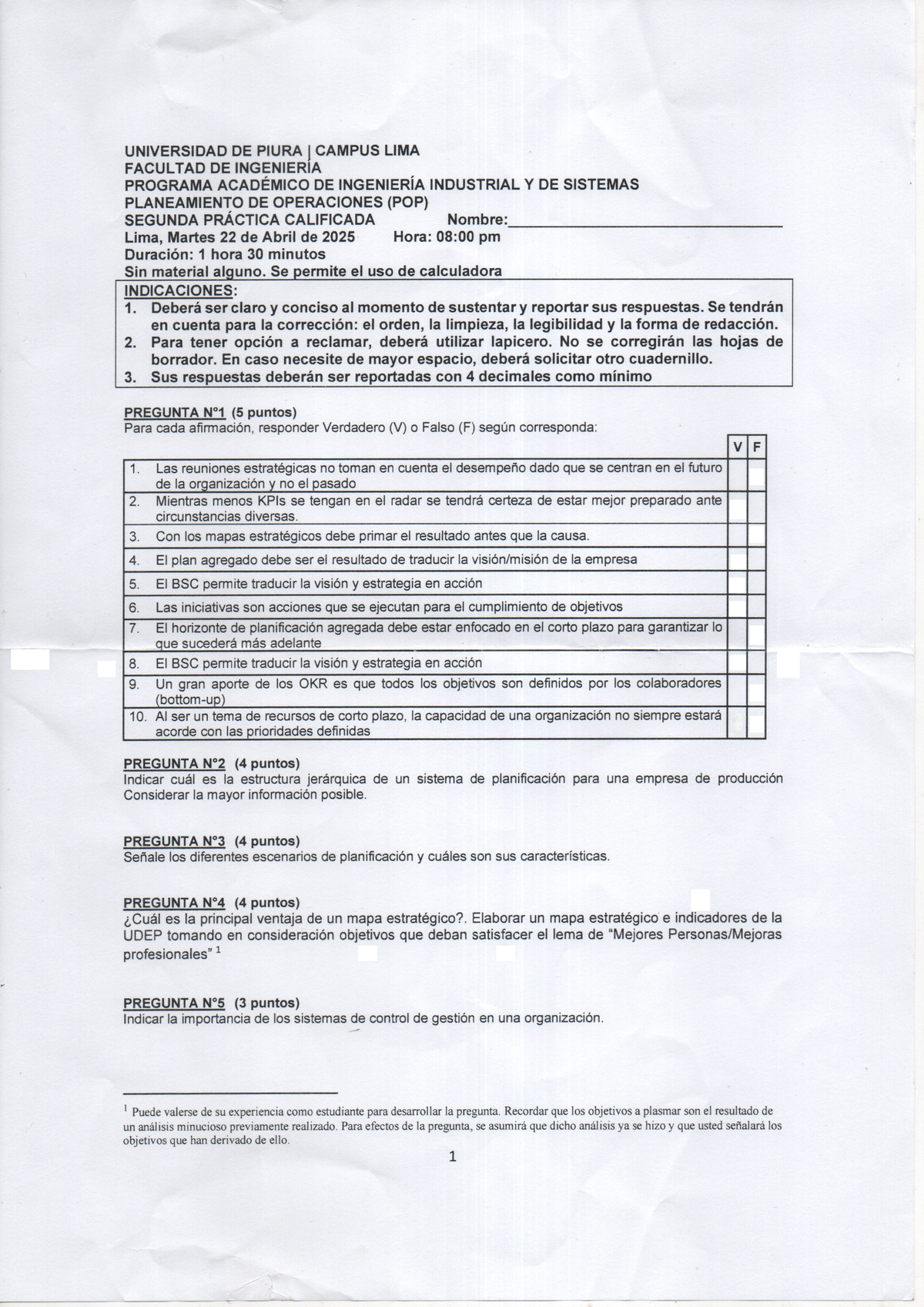 PC2 POP 2025 I - Segunda Práctica Calificada de Planeamiento de ...