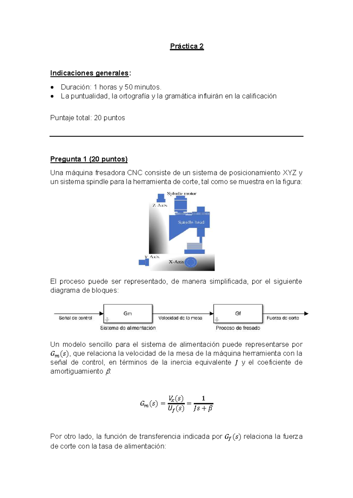PC2 - Práctica Calificada 2: Sistema de Fresadora CNC y Control - Studocu