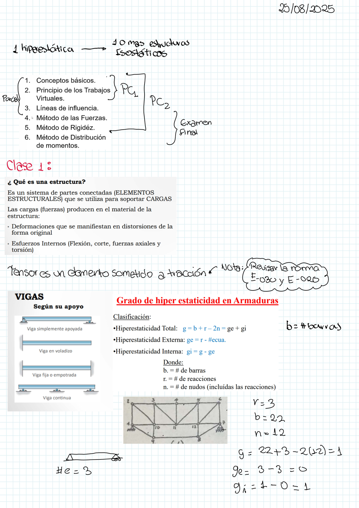 Análisis Estructural: Hiperestaticidad y Métodos de Cálculo (PC1, PC2 ...