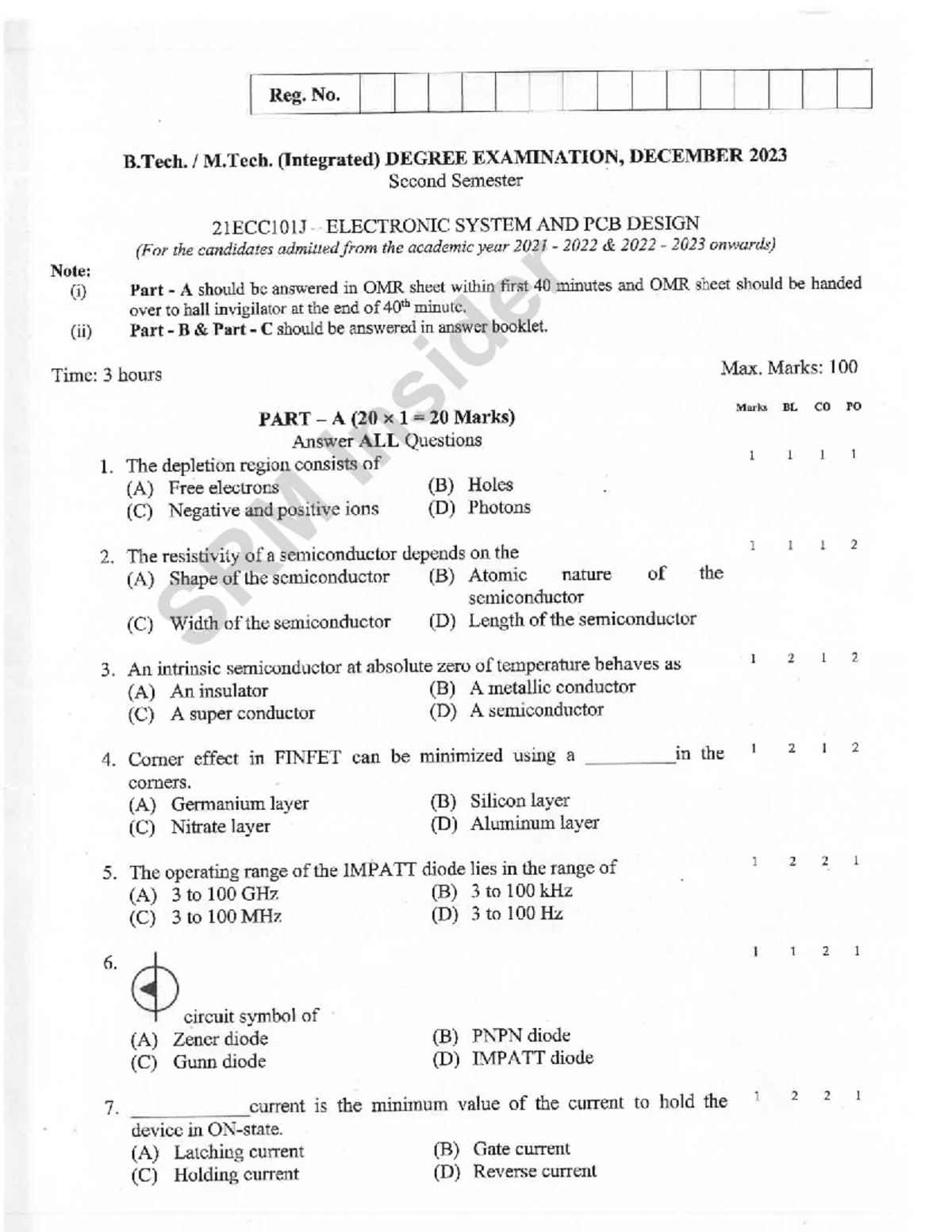 B.Tech. M.Tech. (Integrated) 21ECC101J PCB Design Exam Q2 - Dec 2023 ...