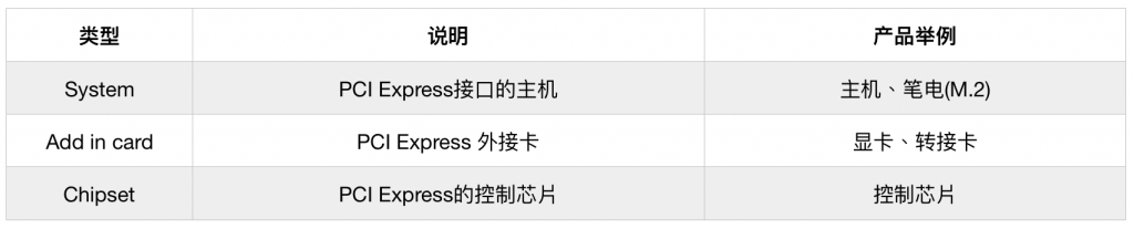 PCI Express可以测试的产品类型及规格