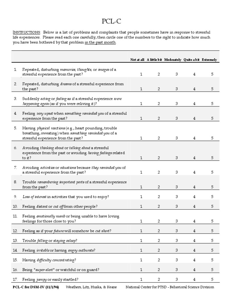 Post-Traumatic Stress Disorder Checklist for Civilians (PCL-C) - Trauma ...