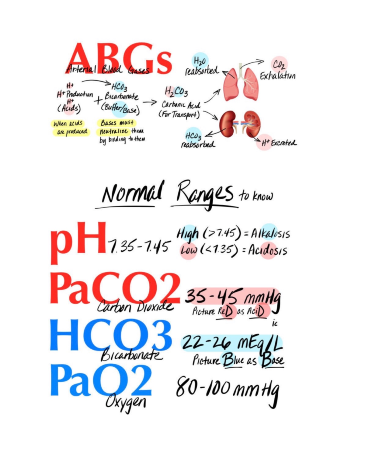 ABG stuff - ABG cheat sheet - ABGs H2O Arterial Blood Gases reabsorbed ...