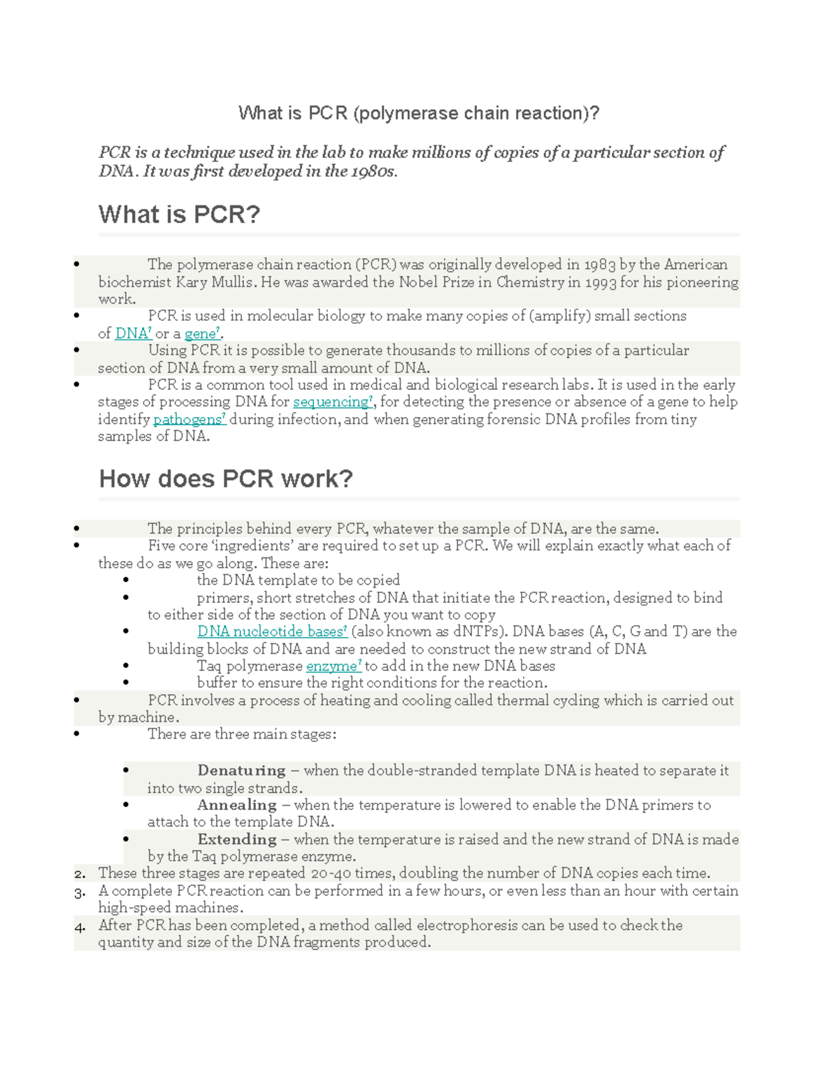 SOLUTION: Polymerase Chain Reaction (PCR) write up - Studypool