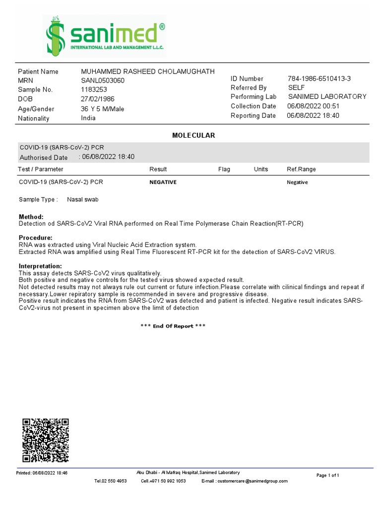 Covid 19 - (RT PCR) Qualitative Test: Final Laboratory Report | PDF ...