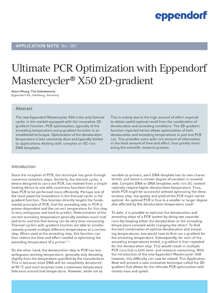 PCR Application Note 387 Thermal Cycler Ultimate PCR Optimization ...