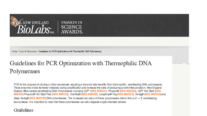 Guidelines for PCR Optimization with Thermophilic DNA Polymerases - Studocu