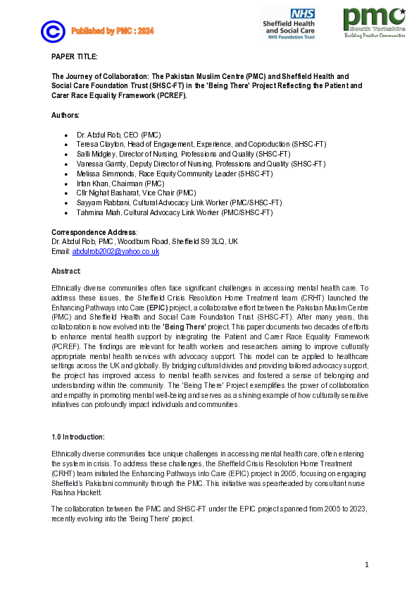 (PDF) The Journey of Collaboration: The Pakistan Muslim Centre (PMC ...
