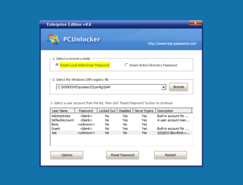 PCUnlocker Windows Password Reset Software - Online Computer Tips