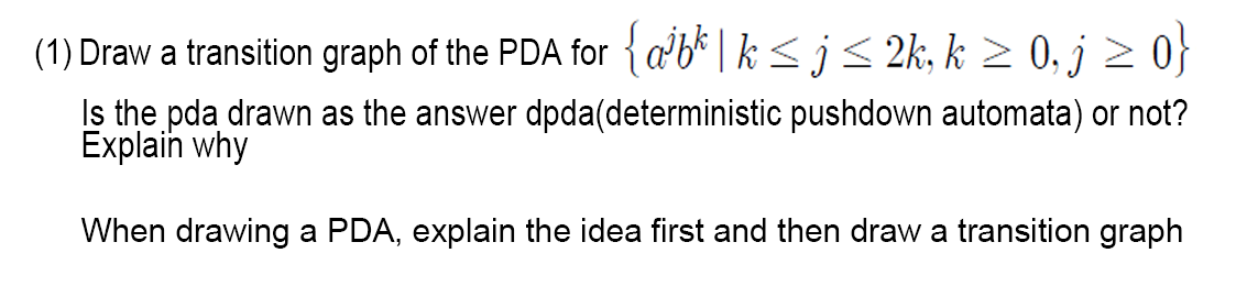 Solved (1) Draw a transition graph of the PDA for {ajbk|ks j | Chegg.com