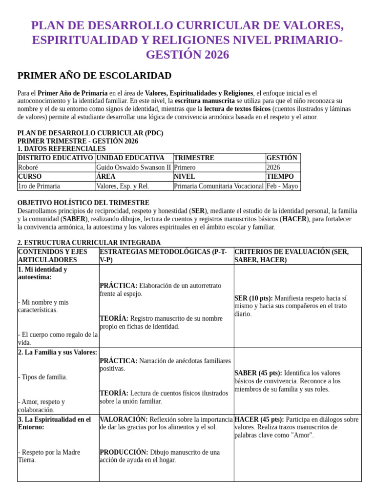 PDC Valores Espiritualidad Primaria-2026 | PDF | Plan de estudios ...