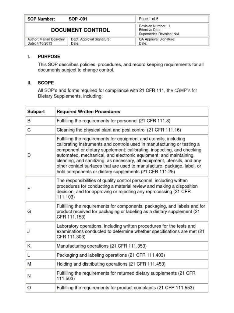 EXAMPLE DOCUMENT CONTROL SOP.pdf | Quality Assurance | Technology ...