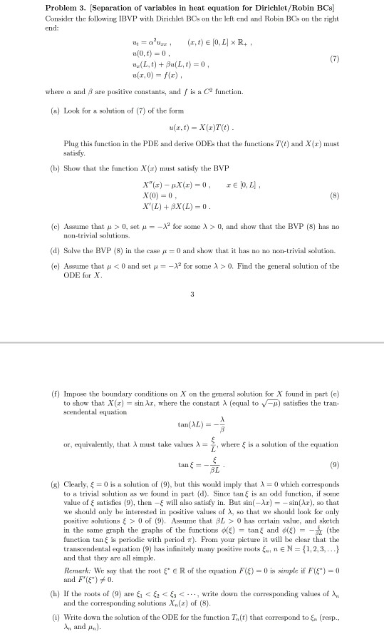 Solved Problem 3. [Separation of variables in heat equation | Chegg.com
