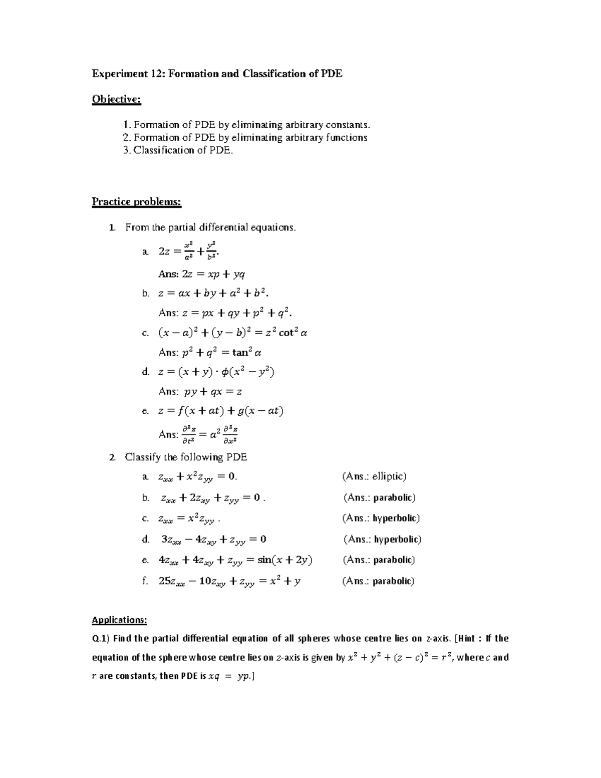 Experiment 12: Formation & Classification of PDEs - Studocu